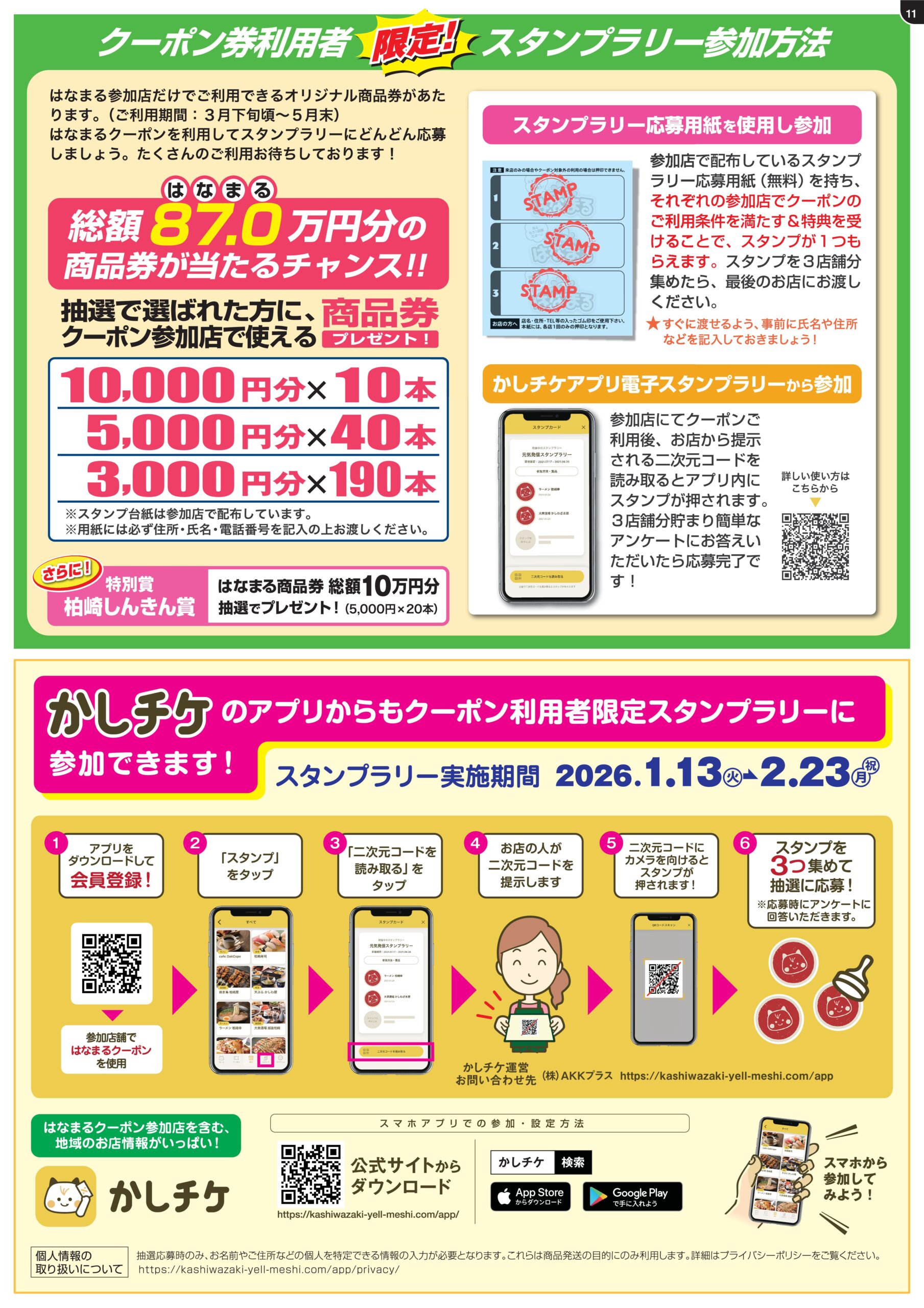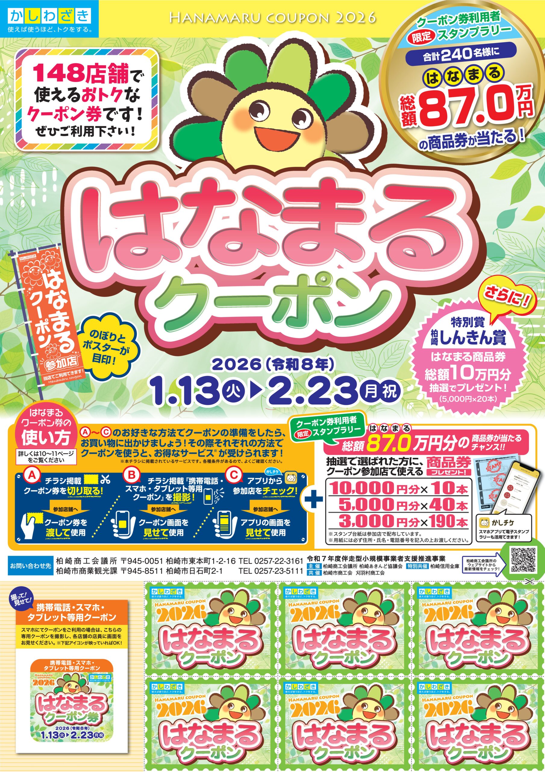 2026年『かしわざきはなまるクーポン』が開始!スタンプラリーでは総額87万円の商品券が当たる!