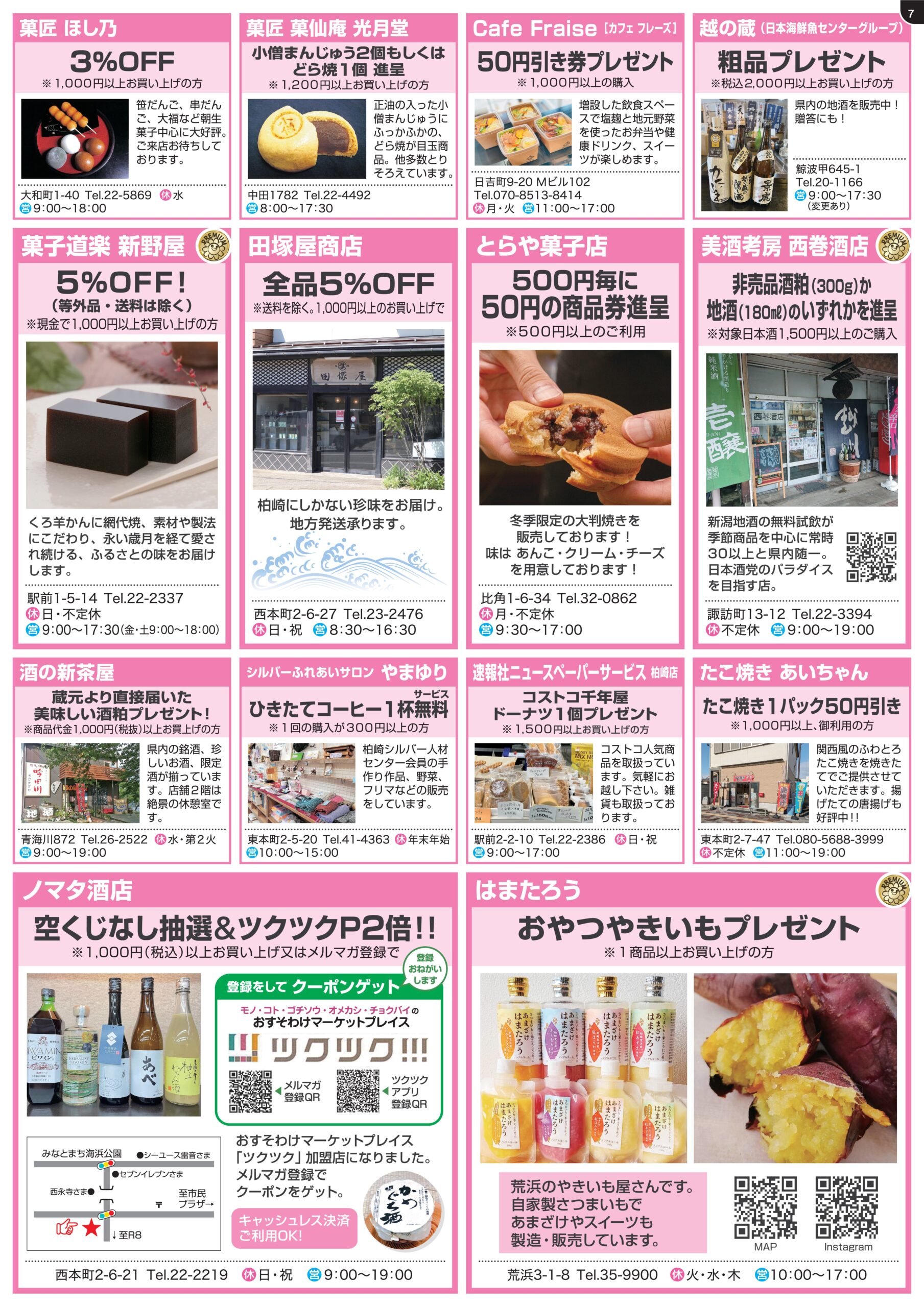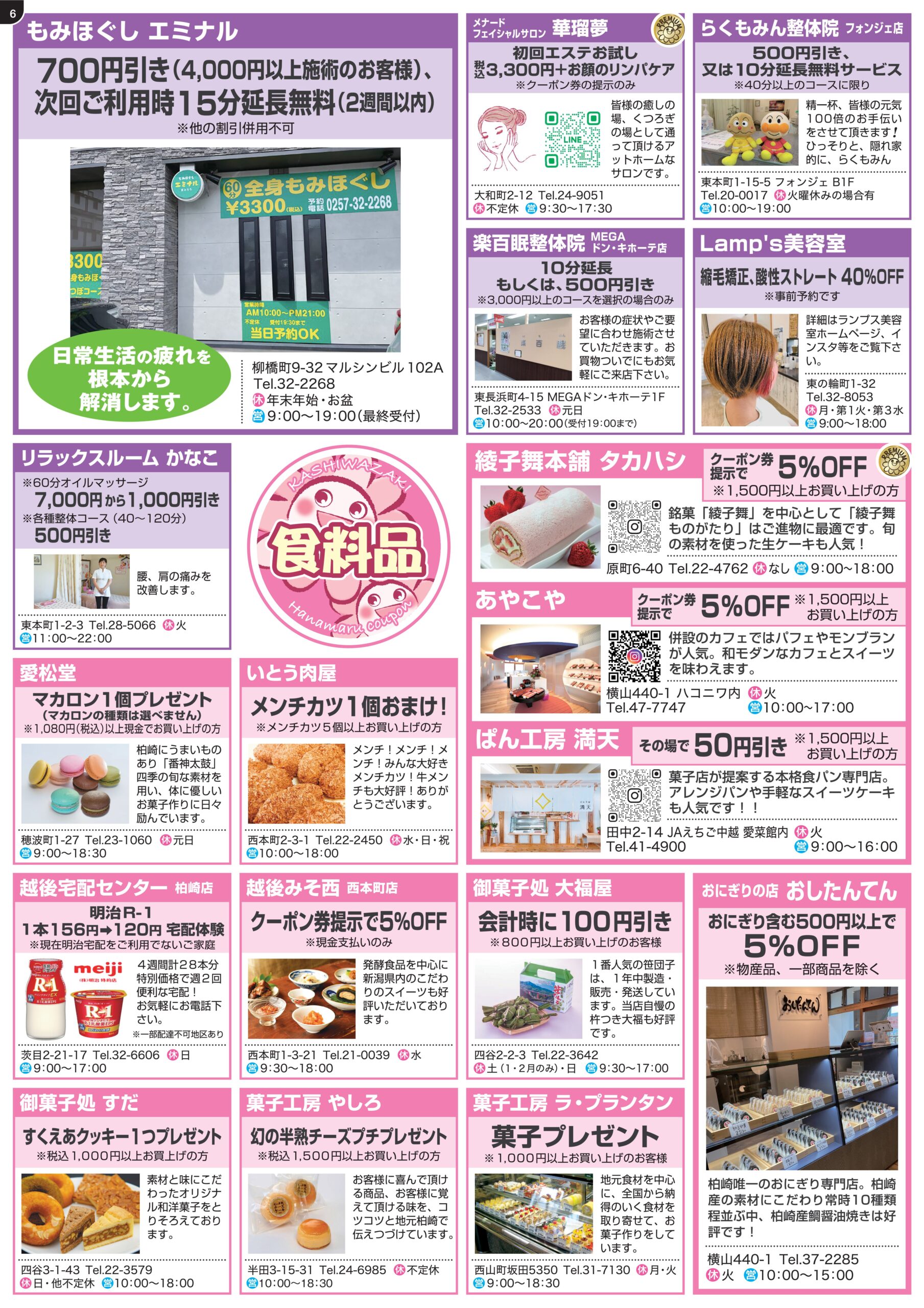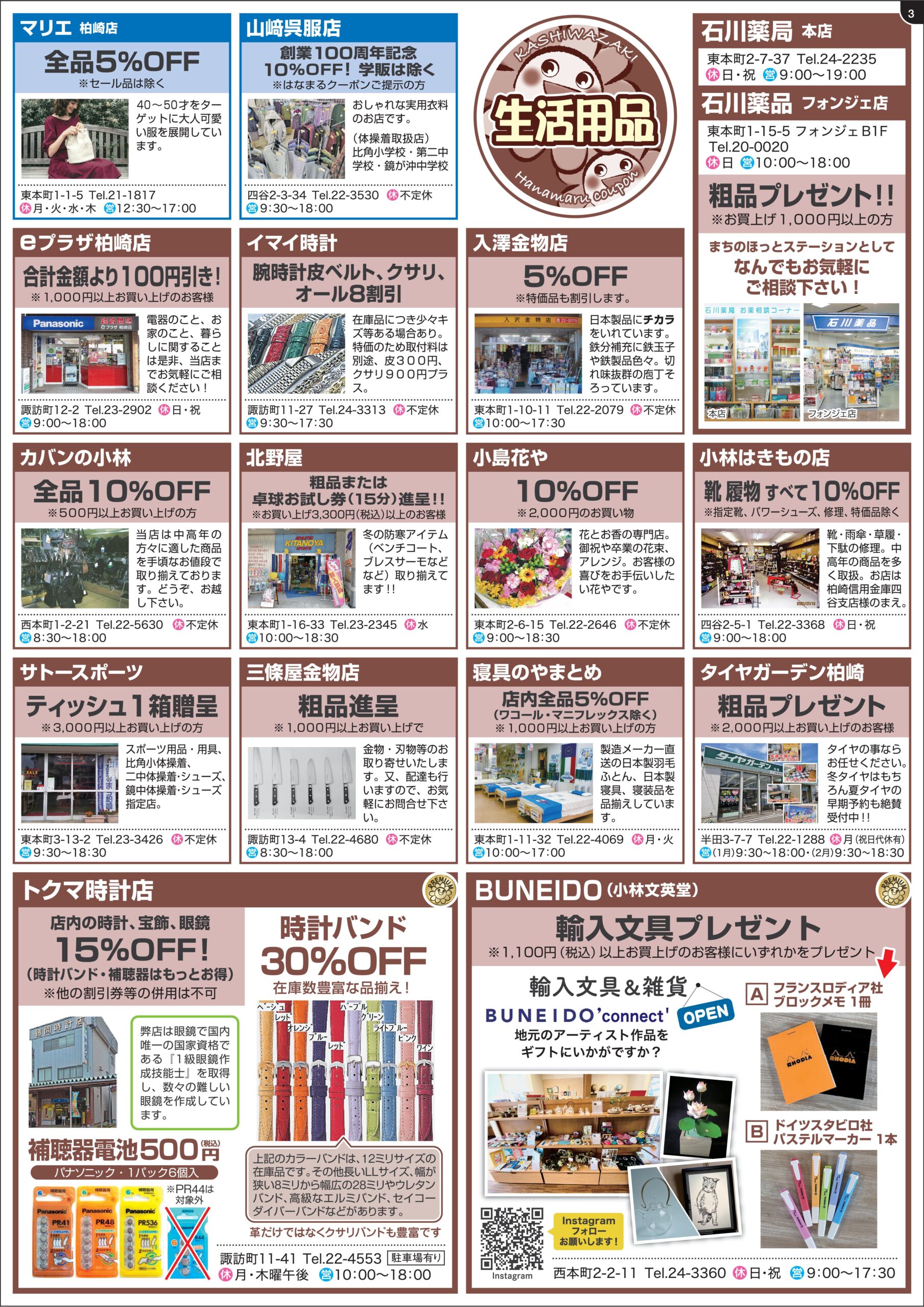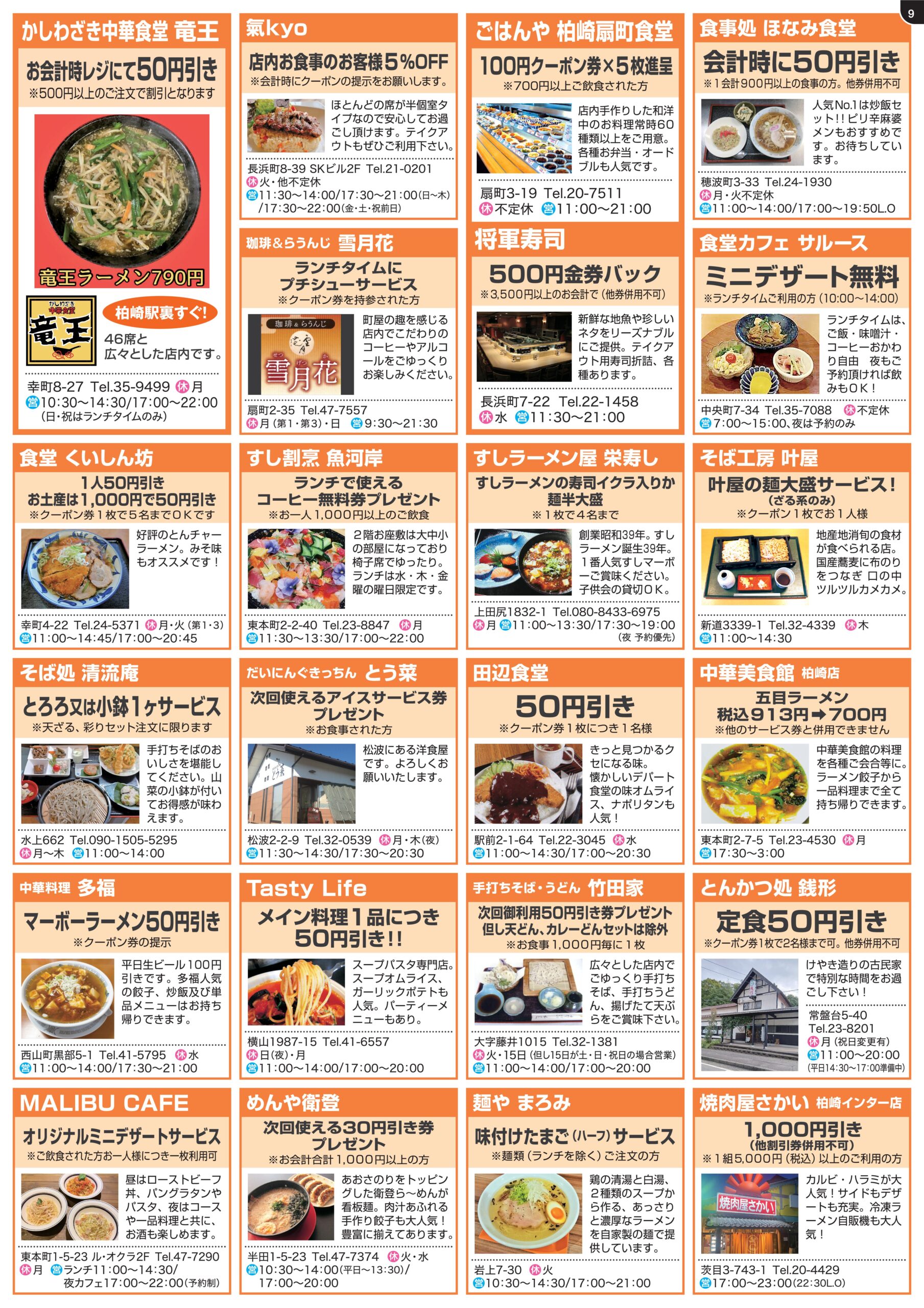 クーポン券付チラシは、広報かしわざき・広報かりわ1月号に折込みされる他、参加店や公共機関等にも設置しております。
