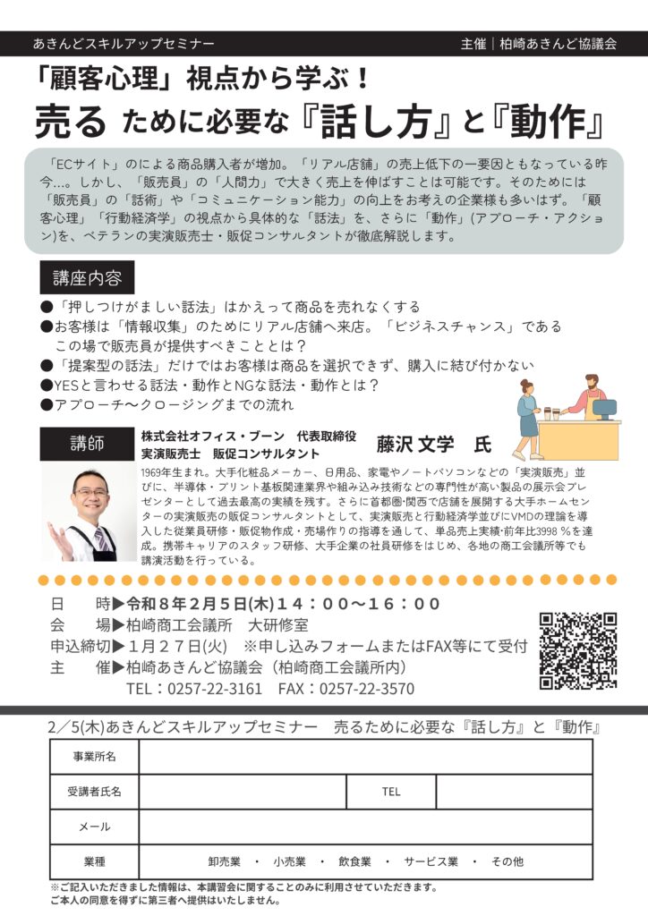 柏崎あきんど協議会では、商業者の皆様を対象にスキルアップセミナーを開催いたします。