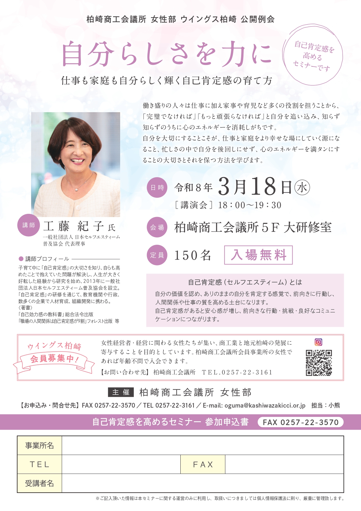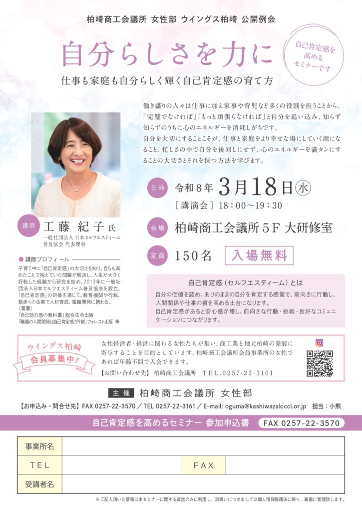 ■講師:(一社)日本セルフエスティーム普及協会 代表理事 工藤 紀子 氏